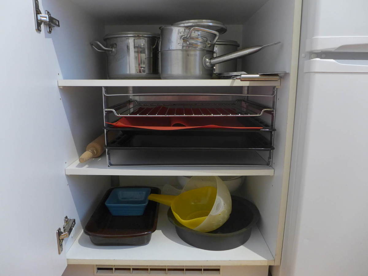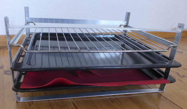 2016-03-29In letzter Zeit verwende ich meinen Backofen recht häufig. Wie in vielen Haushalten wird der Backofen gerne als Lagerplatz für Pfannen und Backbleche verwendet. Vor jedem Backen muss man den Backofen ersteinmal ausräumen um ihn zu verwenden. Weiterhin muss man die ausgelagerten Sachen auch irgendwo hinstellen und hinterher auch wieder einräumen. Mir wurde das irgendwann zu lästig und ich habe die Sachen einfach in der Küche stehen gelassen. Leider sieht die Küche mit den herumstehenden Backblechen unordentlich aus.